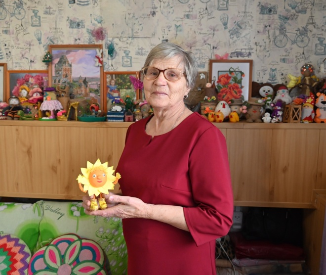 - Могу мастерить целыми днями, даже поесть иногда забываю. Сделаю на улице работу, приду домой, включу телевизор или музыку и за рукоделие. Мне не надоедает. Сегодня встала часа в четыре. Сову сделала из фоамирана, - признается Мария Михайловна. - Идеи поделок придумываю сама или со снохой советуюсь. У меня Интернета-то нет, она мне находит интересные работы. Могу по их образцу выкройки сделать. В кружке при ВОИ нас Анна Метешкина разным техникам научила. Еще хожу на реабилитацию в Центр социального обслуживания. Там девочки проводят замечательные мастер-классы по декоративно-прикладному творчеству.