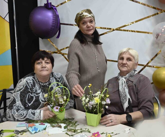 После коллективной фотосессии женщины отправились домой в приподнятом настроении с цветочными композициями и сувенирами из гипса, сделанными своими руками.