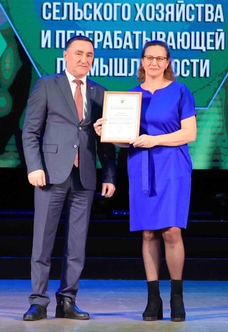 Благодарностью Министерства сельского хозяйства РФ за многолетний добросовестный труд в системе АПК отмечены Василий Ужитчак, оператор сушильного комплекса ООО "Зерноток"; работники филиала АО "Золотые луга" МК "Ситниковский" Наталья Молодых, Виктор Аксенов, Василий Иванов, Светлана Осинцева; Светлана Ткаченко, оператор по искусственному осеменению животных ООО "Подволошиномолоко". Награды вручил Александр Робканов.