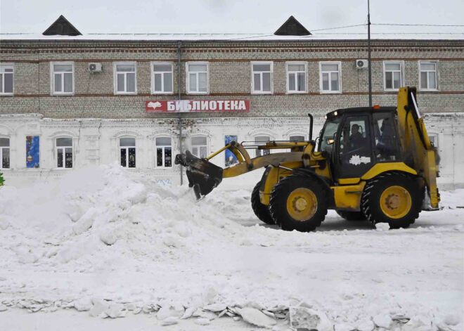 После обильных снегопадов на улицах окружного центра активно работает специальная техника ООО "Ромист". В минувшую среду расчистка проезжей части и тротуара велась по ул. Советской, напротив здания редакции. Более часа сотрудники "Сельского вестника" могли наблюдать за работой коммунальной службы "в прямом эфире".