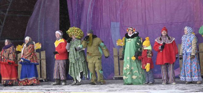 Гости мероприятия, не обращая внимания на ветреную и снежную погоду, получали удовольствие от театрализованного представления о приключениях подружек-хохотушек и братьев-скоморохов. Селяне участвовали в концертно-конкурсной программе "Весну звали!", в которой было много песен, танцев, увлекательных испытаний. Зрители охотно делились впечатлениями о празднике.