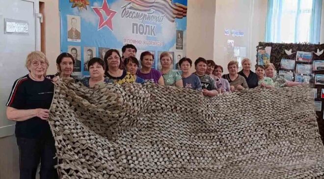 Второй год местный ДК является центром волонтёров СВО, которые, не считаясь с личным временем, ежедневно, кроме выходных, трудятся в своём штабе по три-четыре часа. Мастерицы работают с тканью разных цветов, стараются, чтобы она соответствовала ландшафту местности, куда отправляются сети.