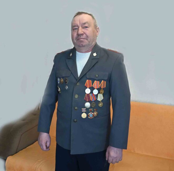 На кителе ветерана МВД, майора милиции запаса множество наград, каждая из которых — свидетельство его жизненного пути. Это медали: "Участник ликвидации последствий катастрофы на Чернобыльской АЭС в 1987 году"; "В память о катастрофе на Чернобыльской АЭС. 25 лет"; "В память о ликвидации последствий катастрофы на ЧАЭС. 30 лет"; медаль Союза "Чернобыль" России "35-я годовщина аварии на ЧАЭС"; "100 лет Уголовному розыску России"; два знака "За отличие в службе" и другие.